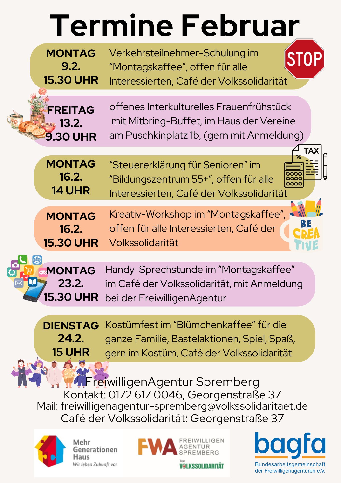 Von Frauenfrühstück bis Kostümfest, von Verkehrssicherheit bis Steuererklärung: Das sind die Termine im Februar.