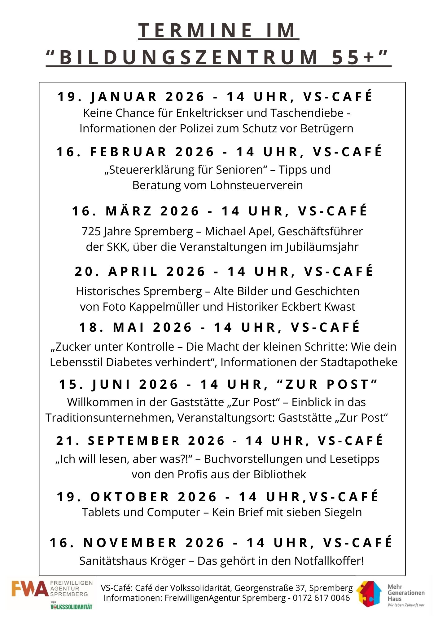 Wie man sich vor Taschendieben schützt, was Senioren über die Steuererklärung wissen sollten oder wie Spremberg sein 725. Jubiläum begehen will - das und mehr gibt es im "Bildungszentrum 55+".