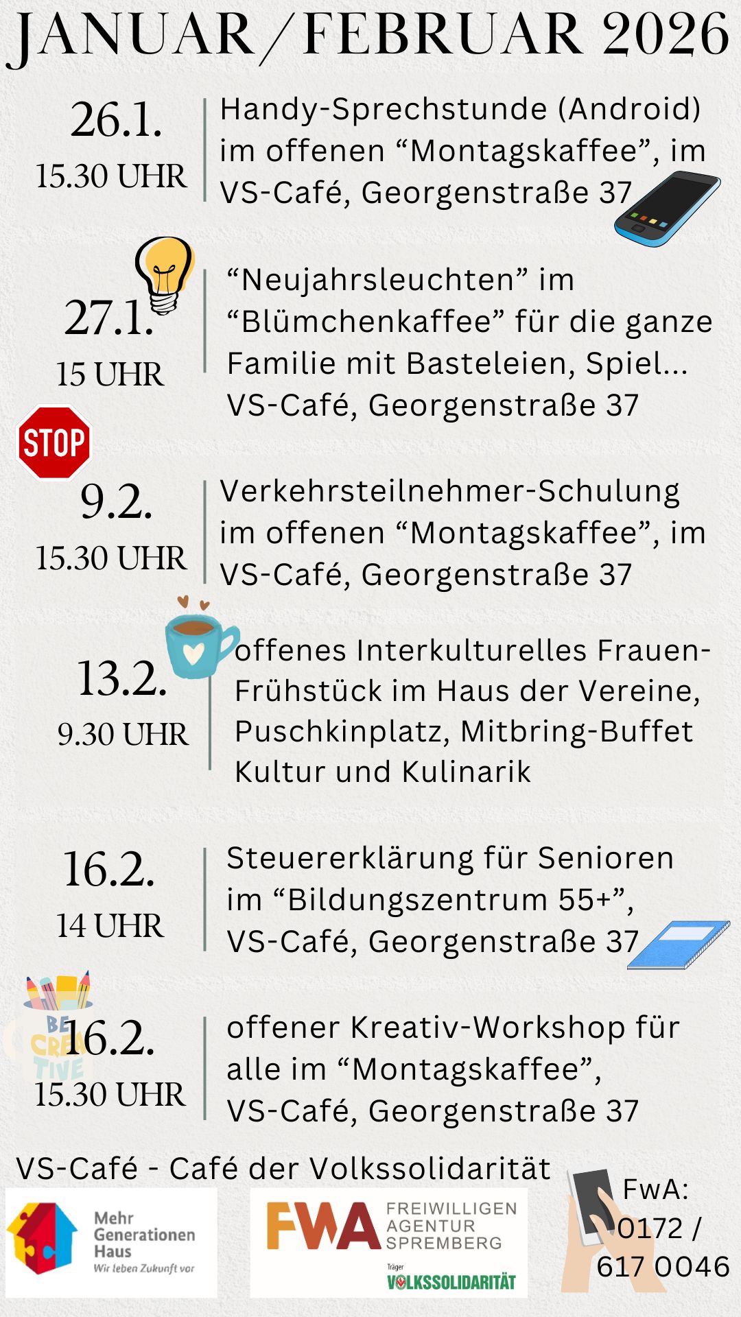 Von der Handy-Sprechstunde über das "Blümchenkaffee" für die ganze Familie bis zum Interkulturellen Frauenfrühstück: unsere Termine im Januar und Februar 2026
