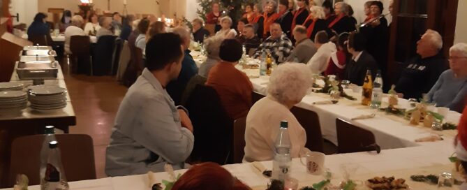 Der festlich geschmückte Gemeindesaal der Michaelkirche füllte sich am späten Nachmittag des Heiligabend 2024 mit Gästen jeder Altersklasse. Sie alle vereinte der Wunsch, diesen besonderen Abend in Gemeinschaft zu verbringen.