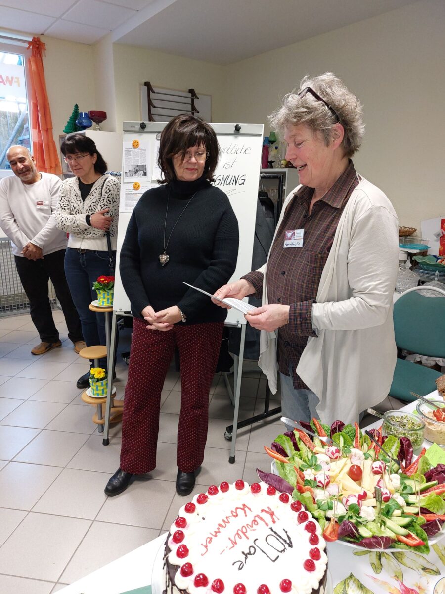 Als 2015 plötzlich Flüchtlinge in großer Zahl nach Deutschland kamen, standen die Kommunen vor der Herausforderung, sie unterzubringen, ärztlich zu versorgen und Mitmenschlichkeit zu zeigen. Benötigt wurden zudem Kleidung, Schuhe, Bettwäsche, Geschirr, Spielzeug. Auch in Spremberg entstand so die Kleiderkammer der Freiwilligenagentur, deren Träger die Volkssolidarität ist. Ende Januar 2026 wurde der 10. Geburtstag der Kleiderkammer mit einem Jubiläumsfrühstück gefeiert. Ehrenamtliche Gründungsmitglieder (Foto 2) erinnerten sich an die Anfangszeit und tauschten sich mit Gästen aus der Stadt und dem Landkreis sowie den Freiwilligen, die heute mit anpacken, über den Werdegang aus. Sprembergs Bürgermeisterin Christine Herntier bedankte sich für die ehrenamtliche Arbeit: „Ehrenamt kann man nicht kaufen! Ehrenamt kommt von Herzen!“ Zu den Öffnungszeiten an bisher drei Tagen in der Woche ist der Zulauf sehr groß – Spenden werden gebracht, sortiert, eingeräumt und wieder ausgesucht und mitgenommen. Die hauptamtliche Helferin und ihr Team aus Ehrenamtlichen verschiedener Nationalitäten sind wichtig für die Besucher. Sie hören zu, geben Tipps, tauschen sich aus und helfen sich gegenseitig – gelebte Integration eben. Daneben werden in der Kleiderkammer wöchentliche Sprach- und Freizeittreffs angeboten.