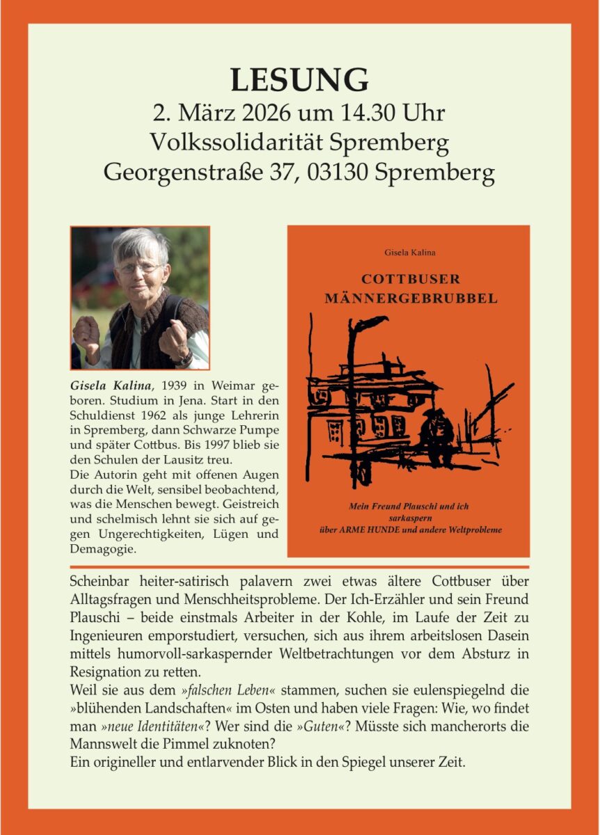 Gisela Kalina liest aus ihrem Buch „Männergebrubbel“ – am 2. März 2026 um 14.30 Uhr.